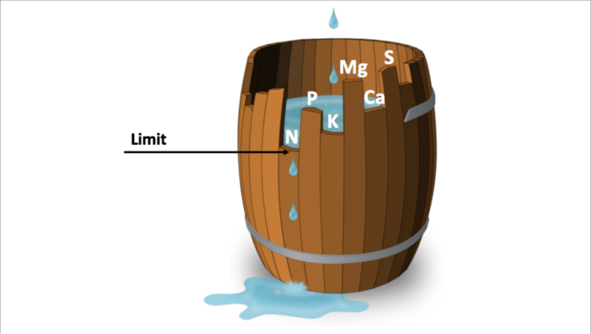 Vagyis hiába adunk megfelelő megfelelő mennyiségben tápanyagokat a növénynek, ha a többi elemből nincs elegendő, mert akkor a kijuttatott tápanyagok nem fognak a teljes mennyiségben hasznosulni.